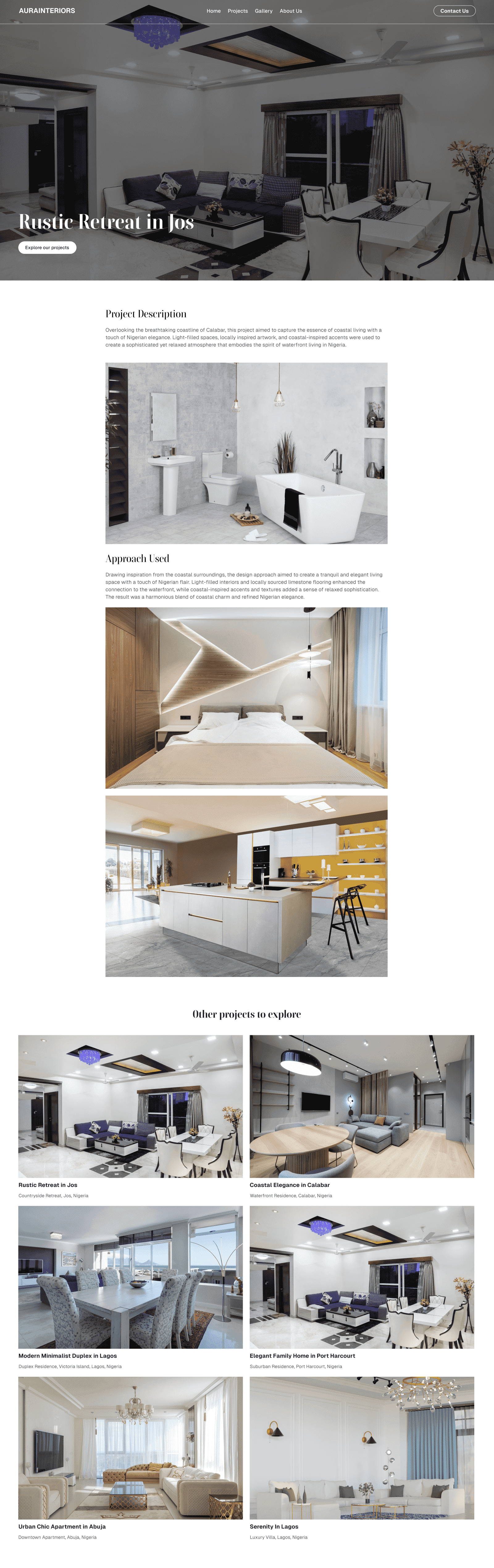AuraInterior displayed their favorite projects that they are mostly proud of and each projects describes how the projects happened from inspection to the finishing project, it also shows the material, the location and the size of the house, as well as the approach used. It finally shows other projects to explore