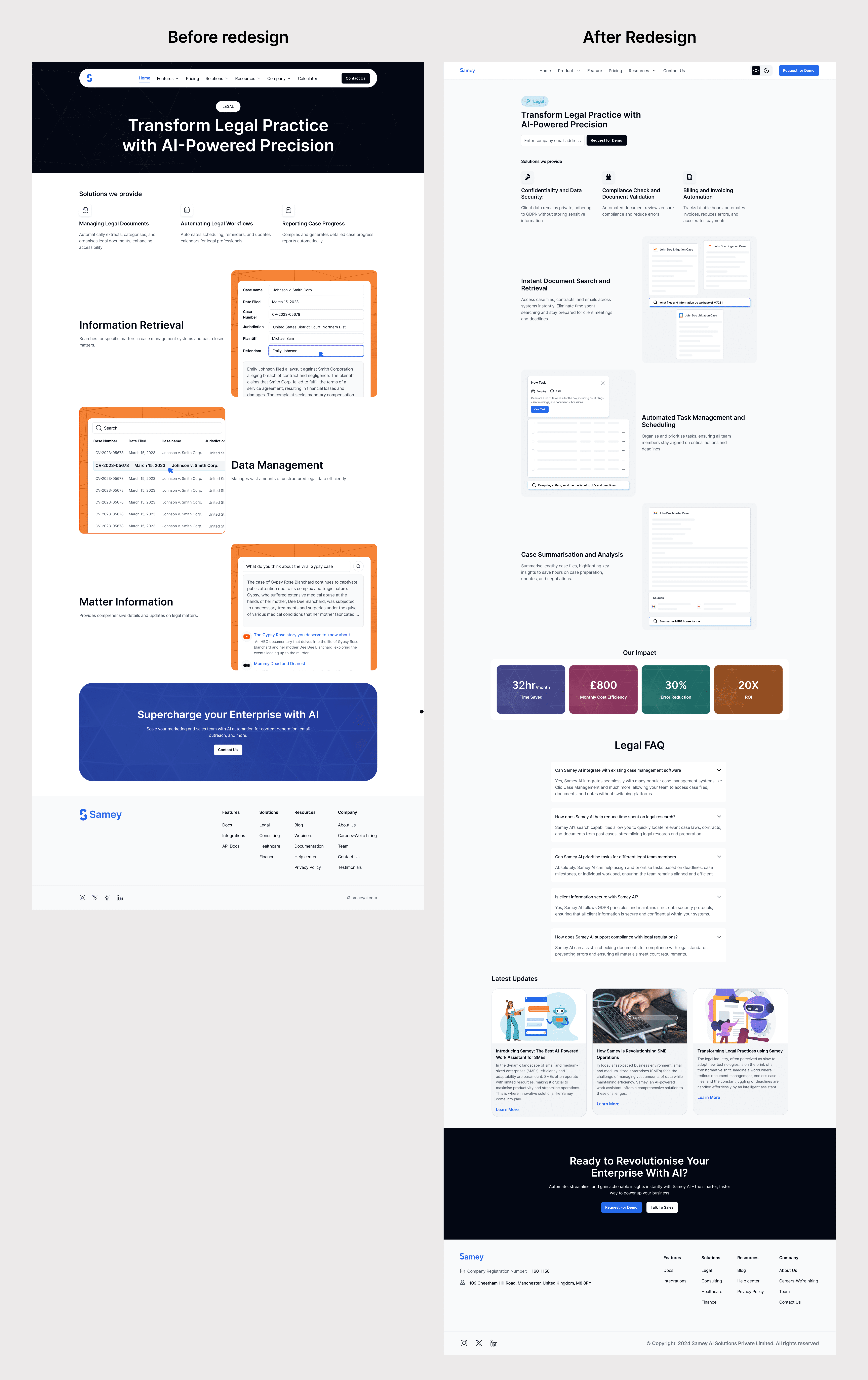The legal sector section shows the functions of samey AI in the legal sector, while there is no much and drastic changes made in these sections, the contents were changed hence the images of the features where thereby changed as wellThis version lacked a lot of things as listed below