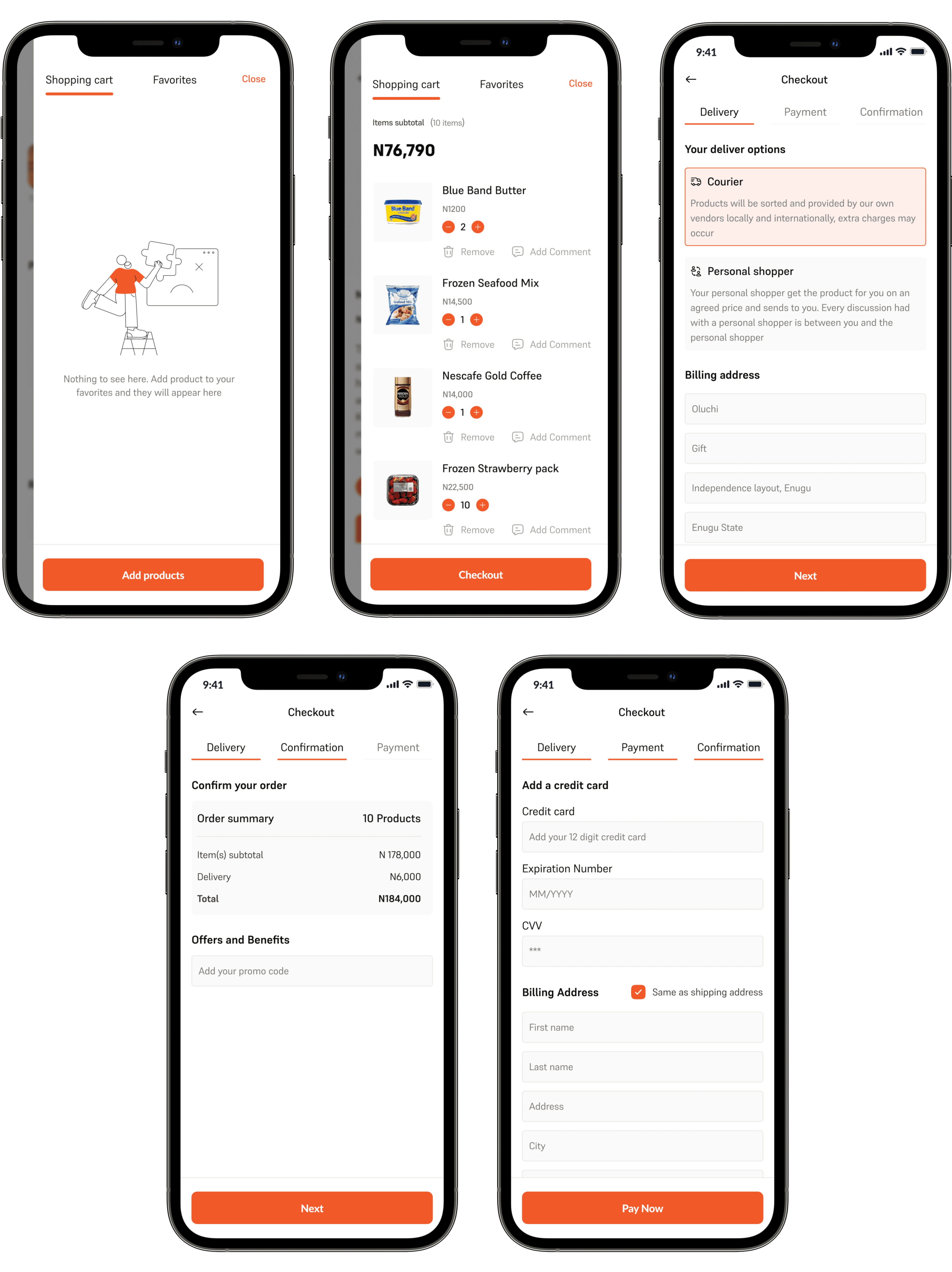 The Checkout (Delivery): This asks the users their preferred delivery option; courier or personal shopper, a well as their billing address.